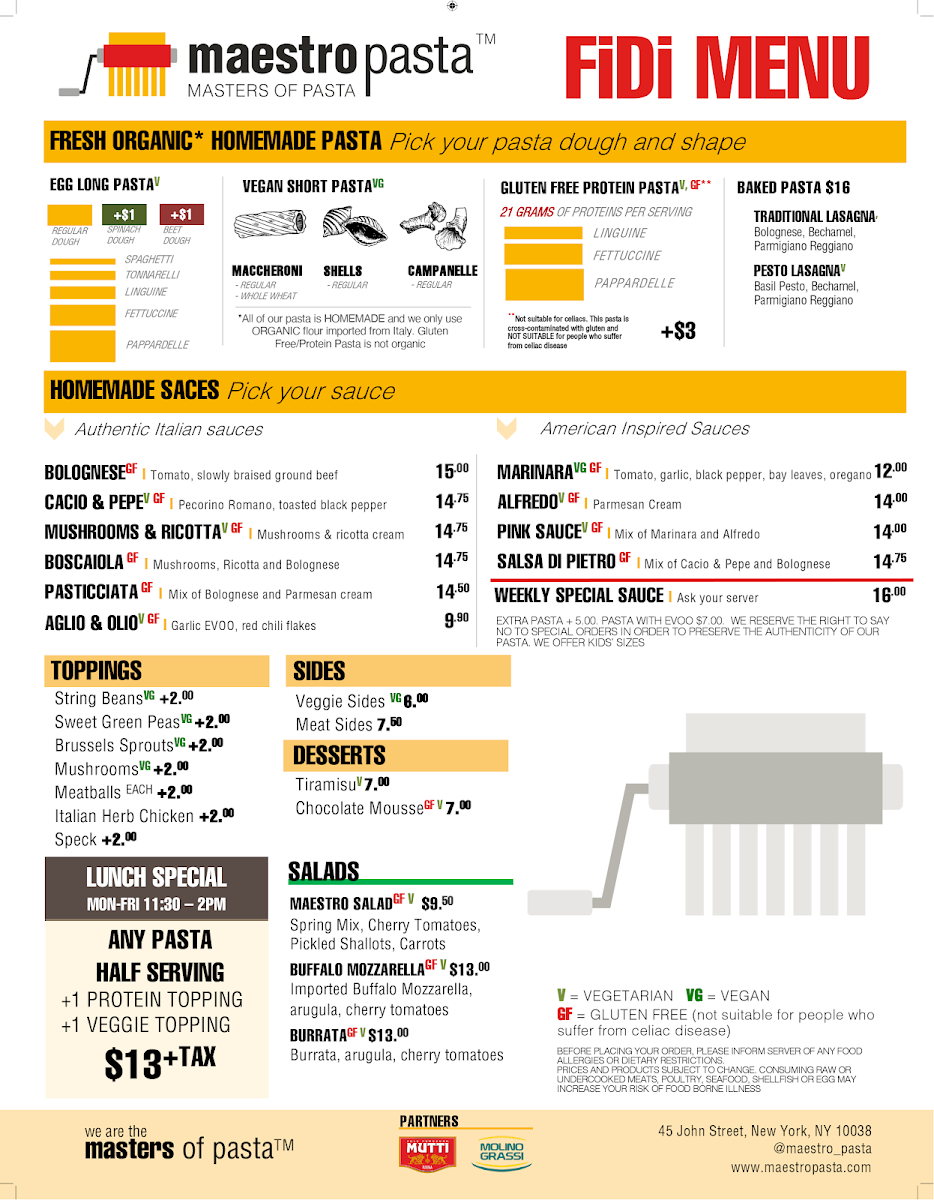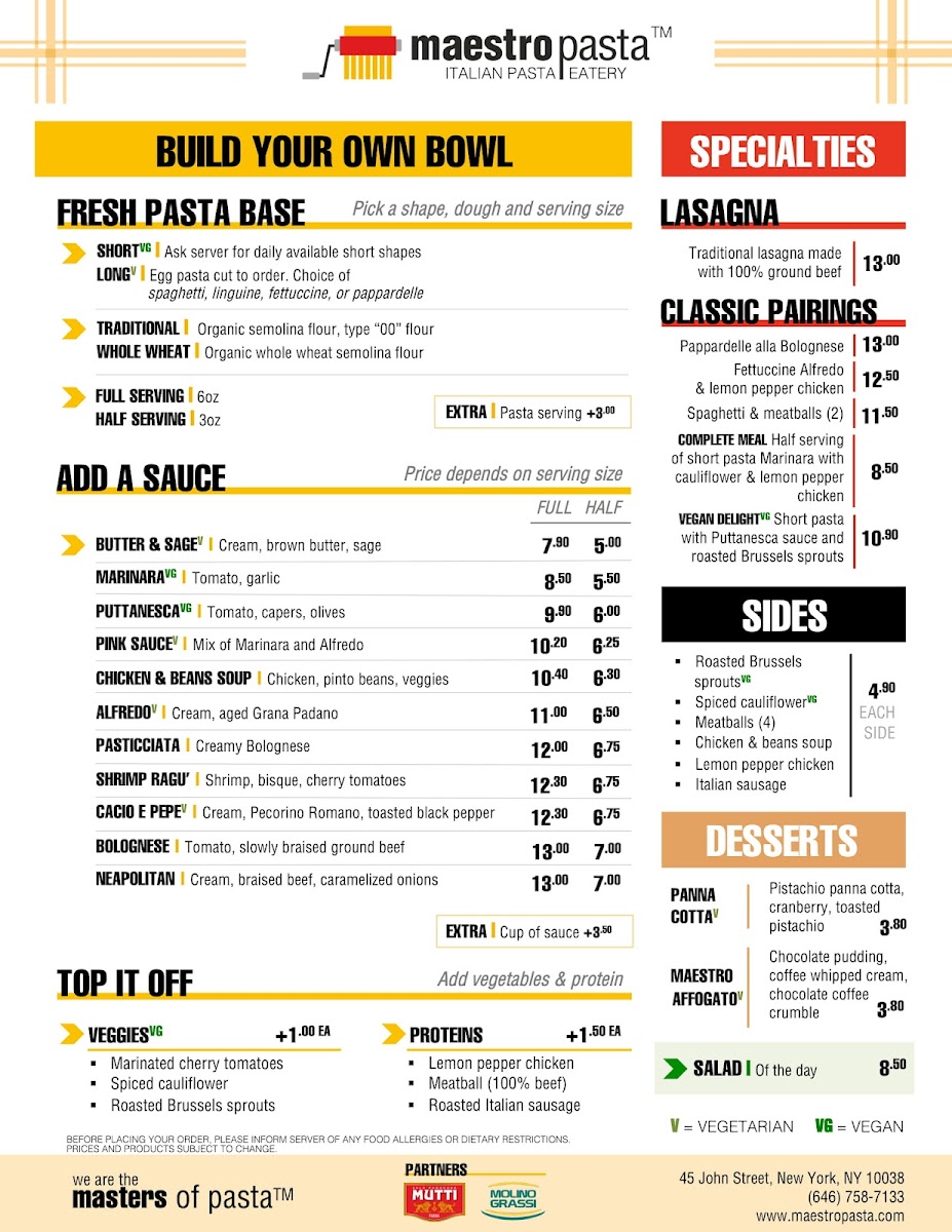 Welcome to Maestro Pasta, where authentic Italian flavors come to life in a cozy and vibrant setting located at 102 MacDougal St, New York. This enchanting eatery offers a delightful menu that showcases handmade pasta crafted with passion and precision.